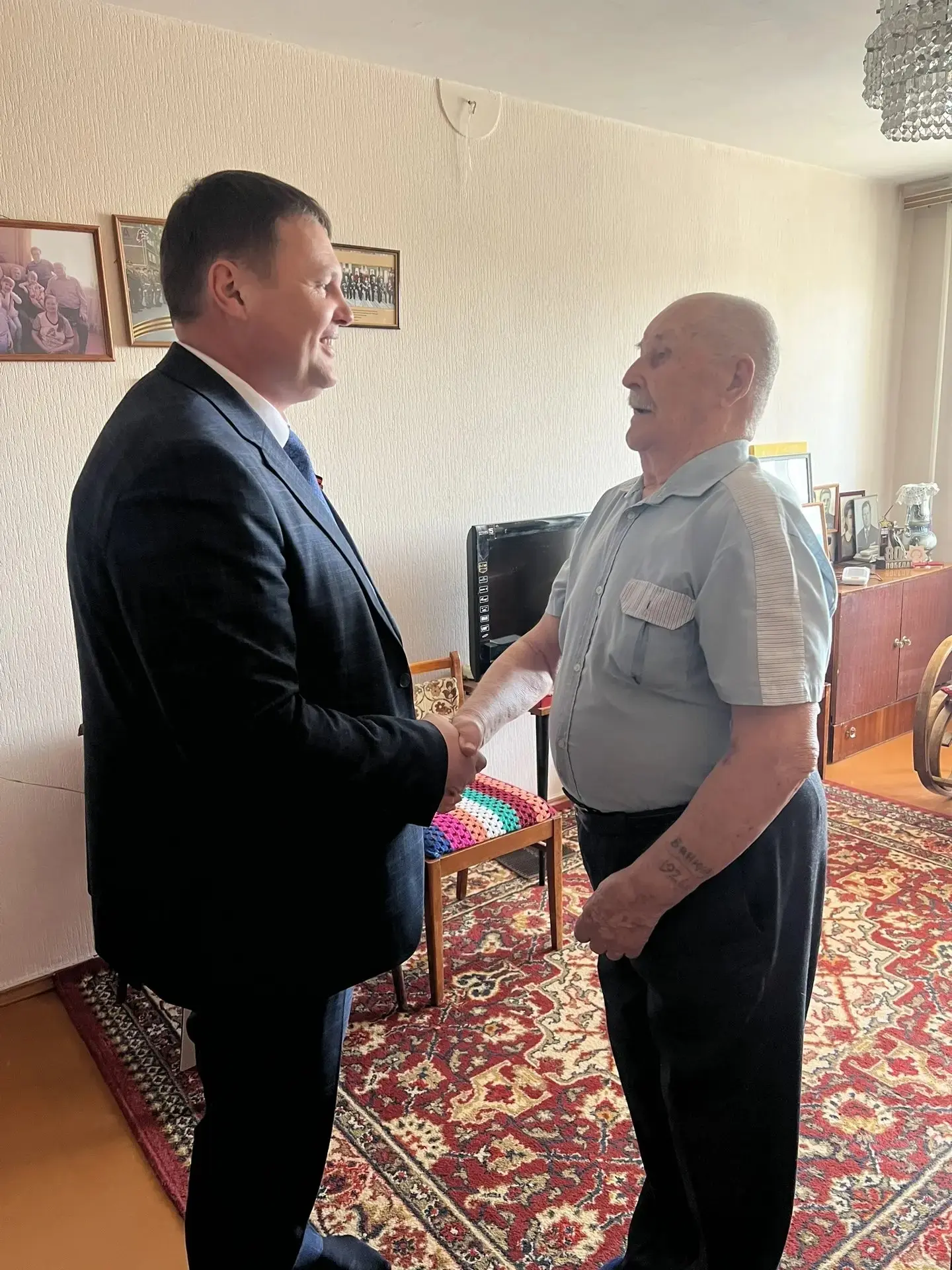 Ветеран, в свою очередь, поблагодарил за внимание и заботу, поделился воспоминаниями о военных годах.