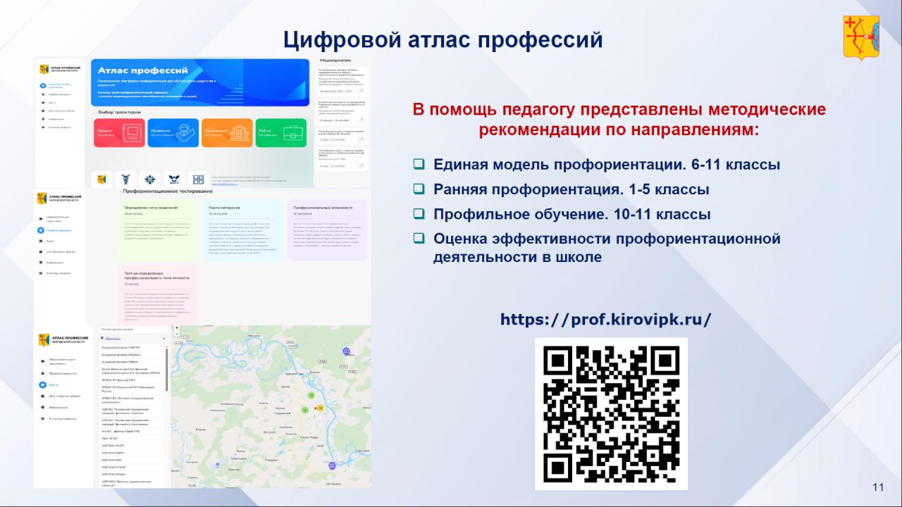 — Нами сделан первый шаг — разработан профориентационный атлас профессий, занятия с использованием которого с этого года будут проводиться во всех школах.