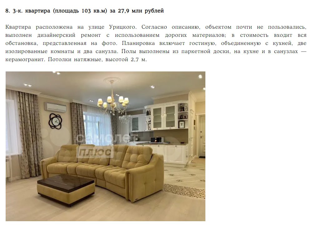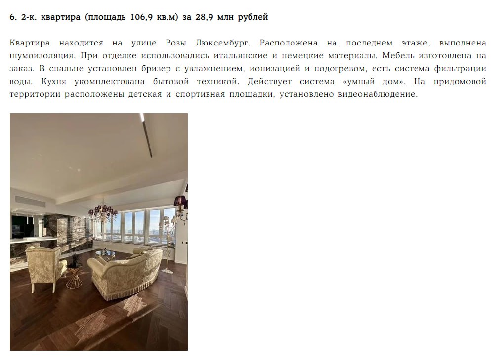 «Бизнес новости» изучили самые дорогие предложения на площадке объявлений и составили список самой дорогостоящей квартирной недвижимости на вторичном рынке в областном центре.
