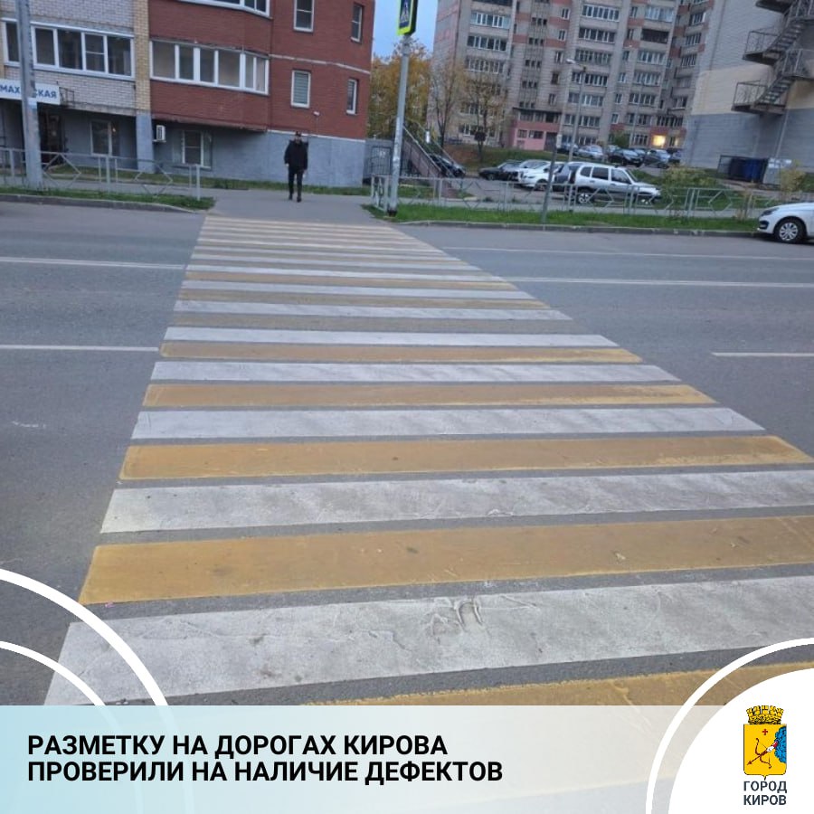 Сегодня специалисты отдела безопасности дорожного движения дирекции благоустройства провели эксплуатационный контроль дорожной разметки на улицах города Кирова.