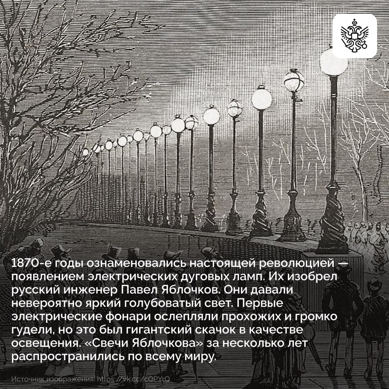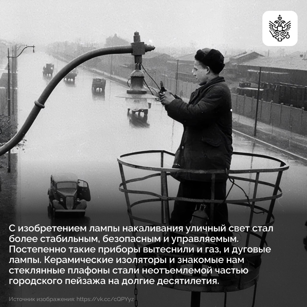 В карточках рассказываем историю уличного освещения: от тусклых и опасных огней прошлого до умных ламп сегодняшнего дня.