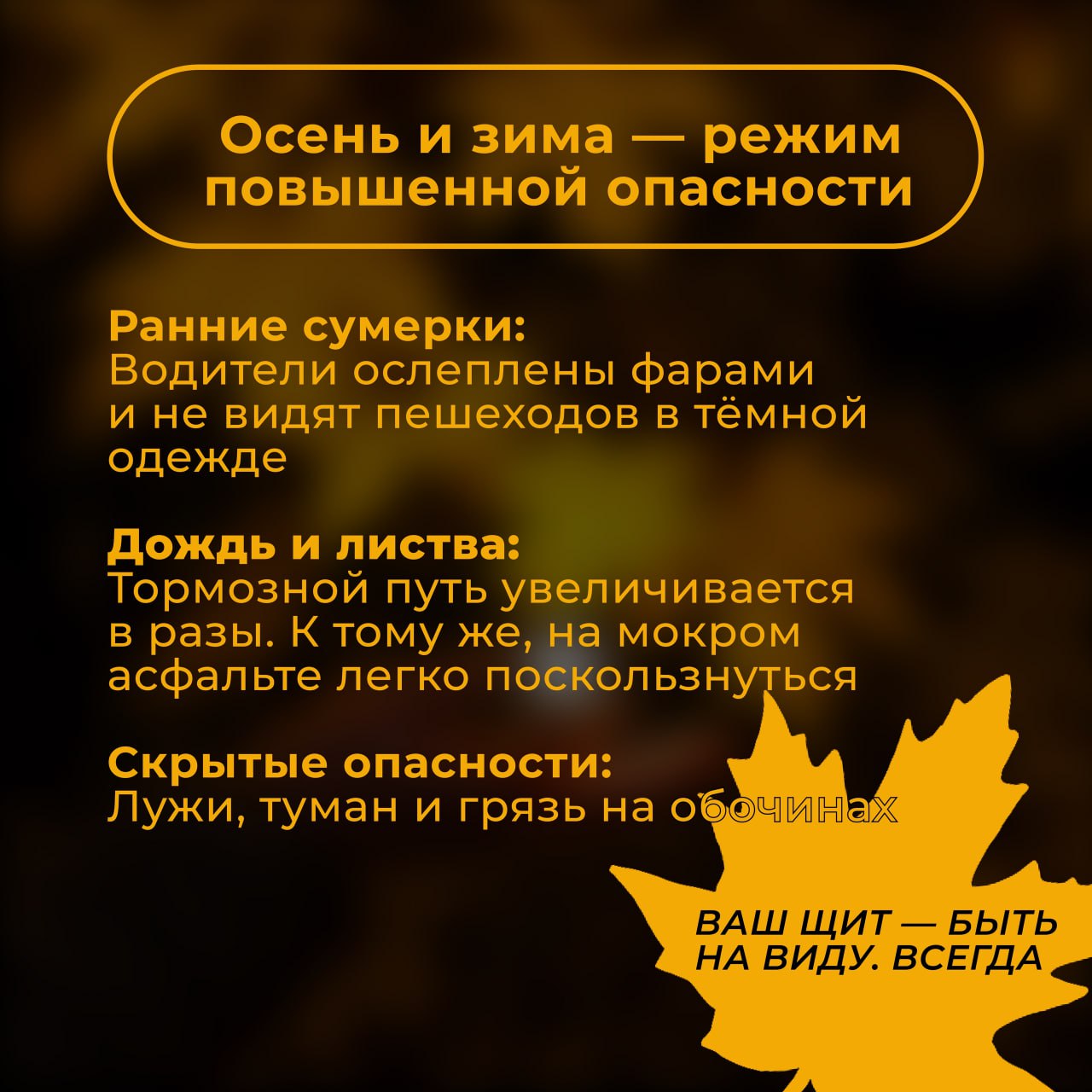 Ваш щит – быть на виду: правила безопасности в тёмное время суток