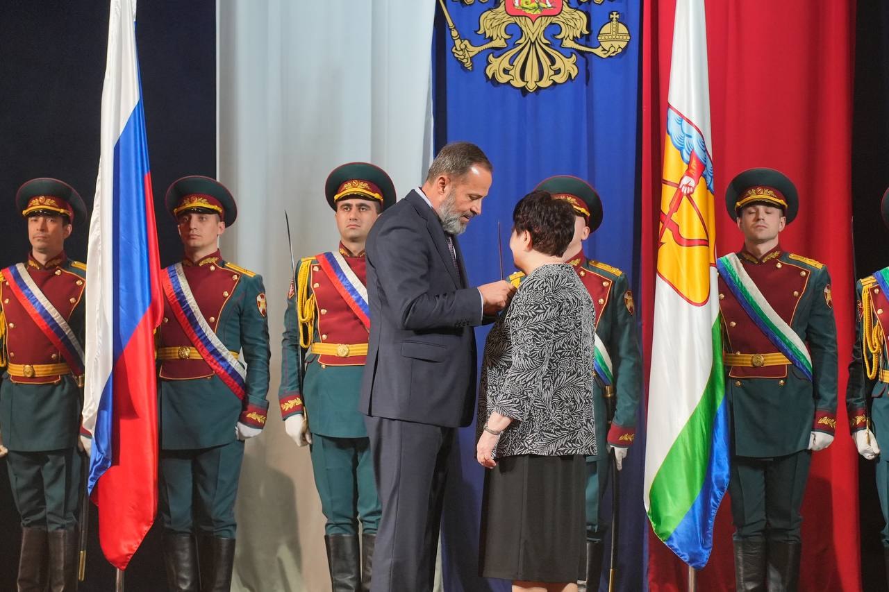 В рамках церемонии награждения полномочный представитель Президента Российской Федерации в Приволжском федеральном округе Игорь Комаров вручил Волковой Зинаиде Михайловне, председателю территориальной избирательной комиссии Юрьянского района, нагрудный знак к почетному званию «Заслуженный работник избирательной системы Российской Федерации».