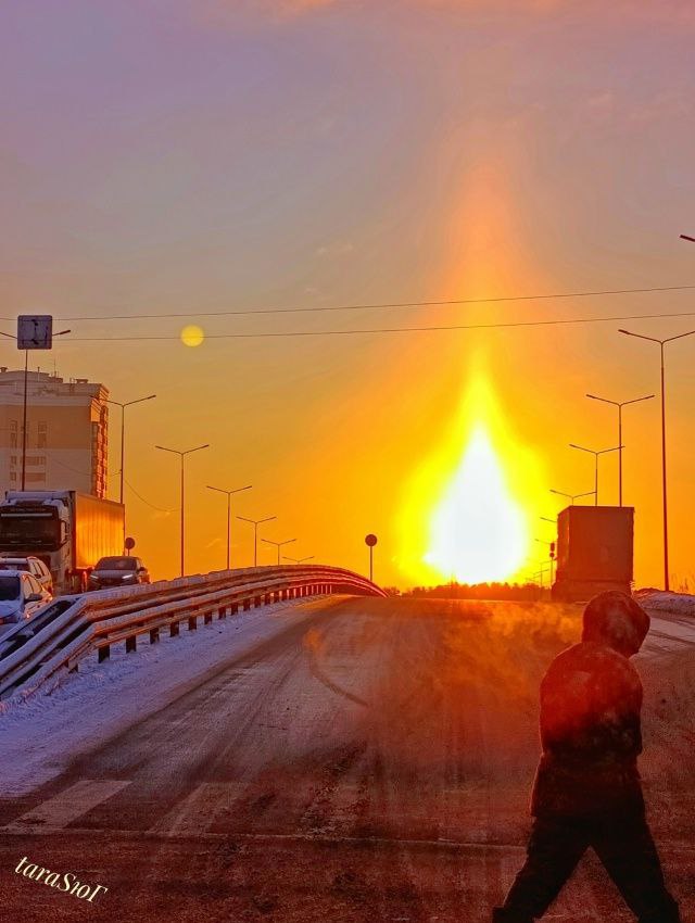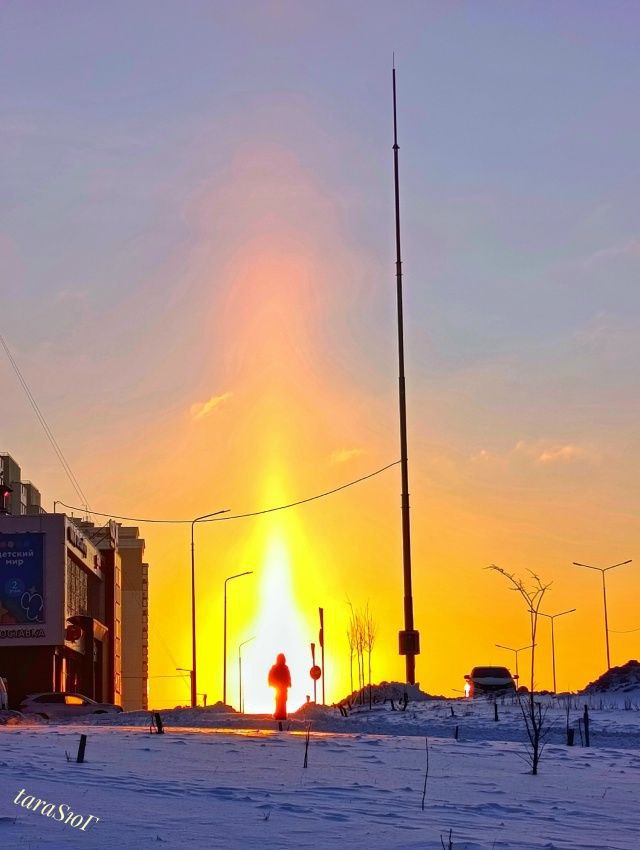 КрасивоеМощный верхний и нижний световой столб сегодня утром в Кирове. Гало сформировано на парящих ледяных кристаллах около земной поверхности. Об этом рассказали метеорологи-любители.Фото: Мика Миковна