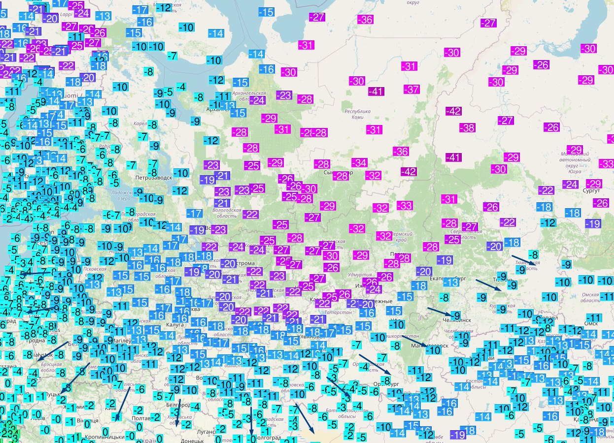 - Архангельская область, метеостанция Сура -30,6