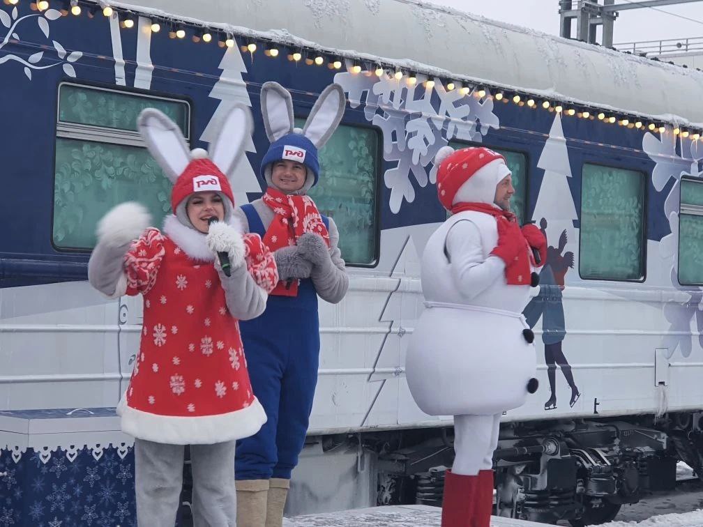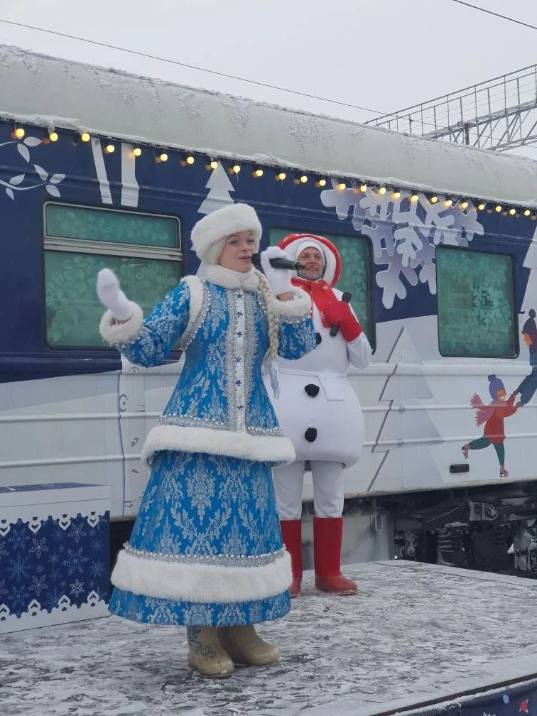 На вокзале – праздничная атмосфера, слышны детский смех и музыка: Дед Мороз и его помощники приветствовали жителей Кирова.