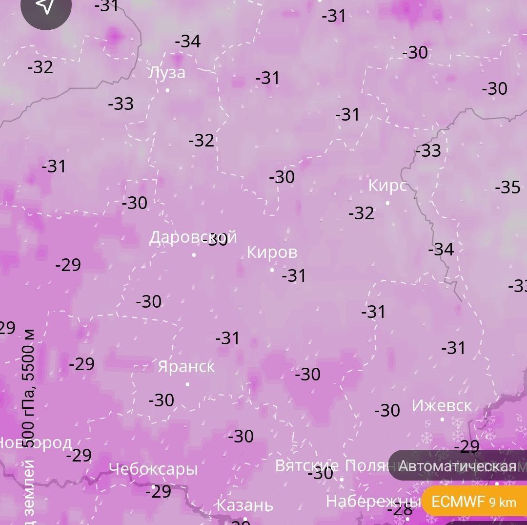 — Пик ультрополярного вторжения может быть 22 января. Предварительно понижение температуры до -30...-35°С по территории Кировской области, — сообщает группа «Любительская метеорология в Кирове».