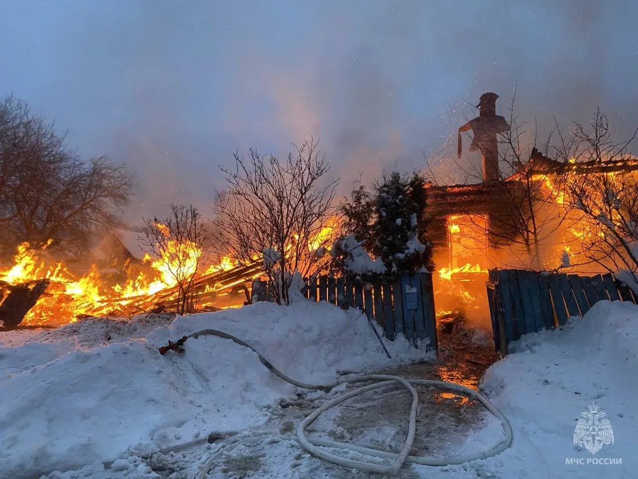 Дом почти полностью уничтожен пламенем, однако пожарным удалось локализовать огонь и защитить близлежащее строение от возгорания.