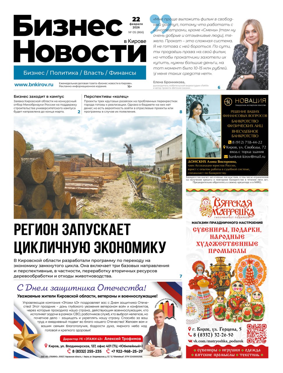 Свежий номер газеты «Бизнес новости в Кирове» активно распространяется.