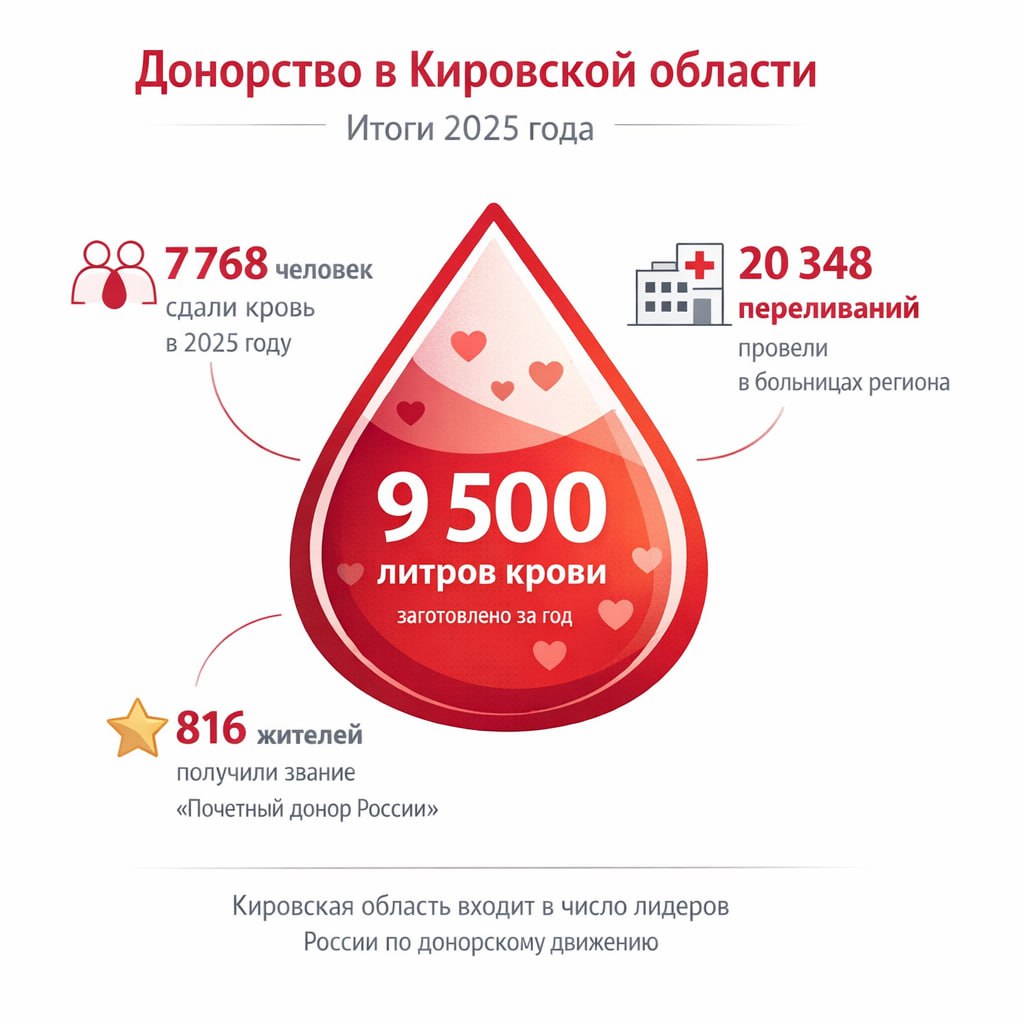 Каких результатов удалось добиться донорскому движению Кировской области за прошлый год — смотрите в карточке.