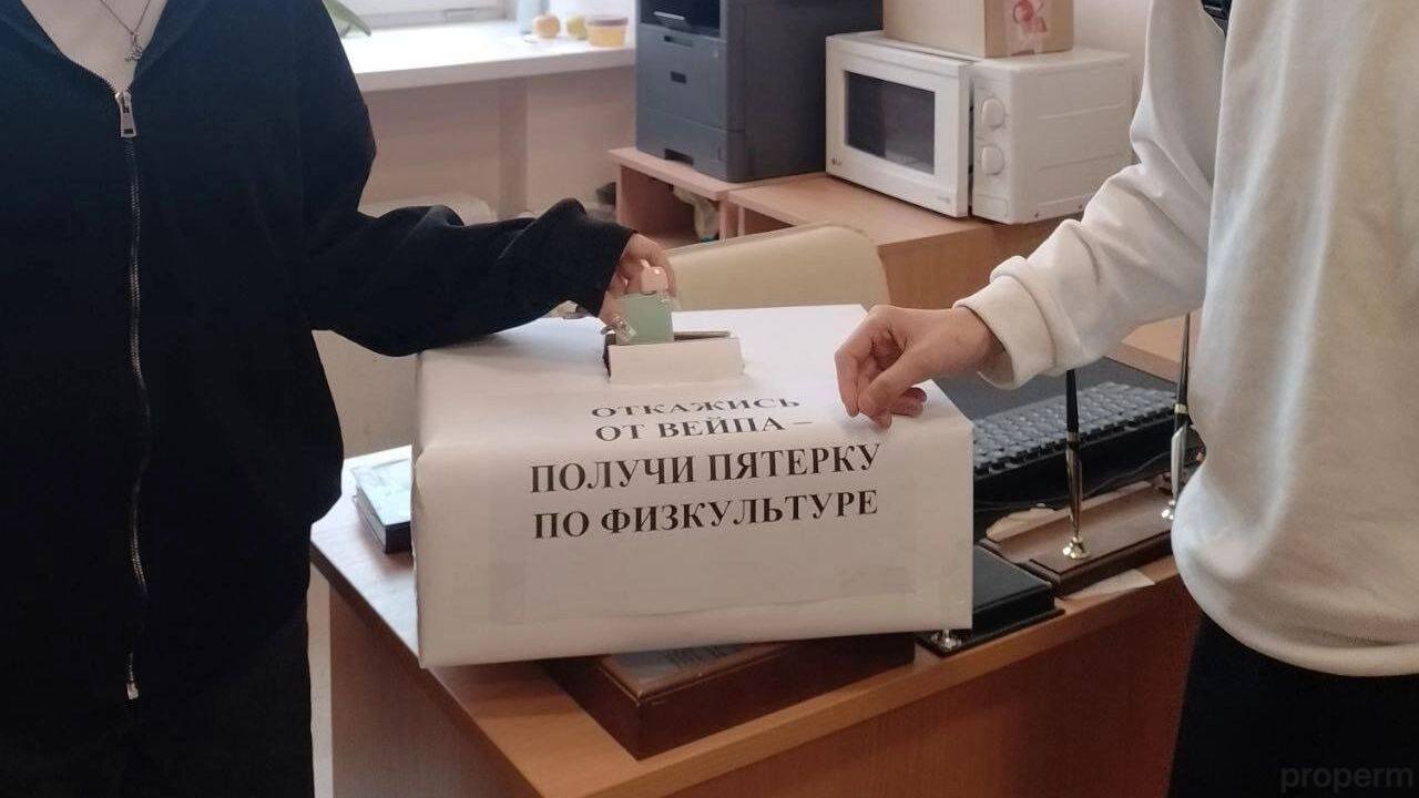 Интересную акцию запустили в одной из школ Перми. Старшеклассникам предлагают сдать вейп и получить взамен «пятёрку» по физкультуре.