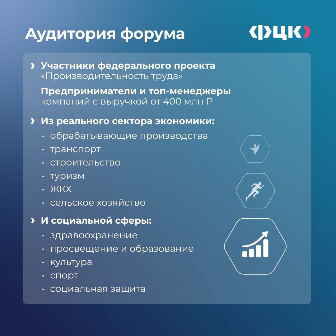 Форум проходит в рамках федерального проекта «Производительность труда» национального проекта «Эффективная и конкурентная экономика».