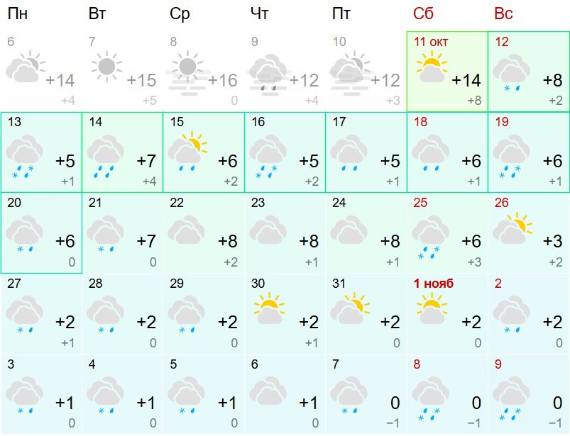 Сегодня синоптики обещают до +14, а уже завтра погода начнет резко меняться. Дожди — временами со снегом — и не больше +5-6 градусов днем, чуть выше ноля по ночам