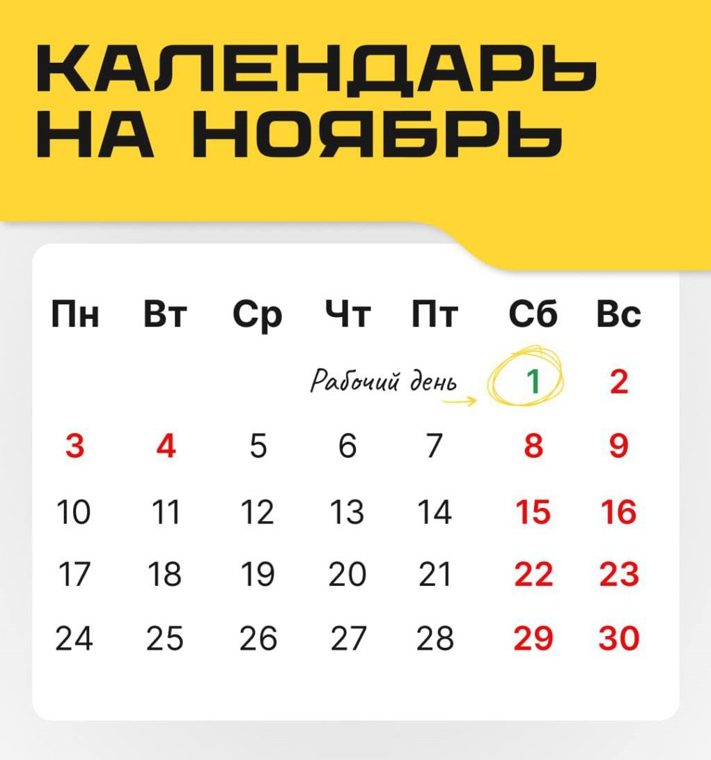 На следующей, напомним, будет 6 рабочих дней. Вслед за ними нас ждут 3 дня выходных — 2, 3 и 4 ноября.