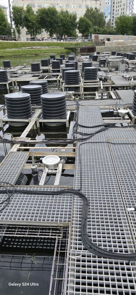 Конструцкции фонтана разобраны на части, промаркированы и вывезены на хранение. Под водой остались кабели, они отключены, изолированы и положены на дно пруда. Начать сборку фонтана планируется, как только сойдет снег и растает лед.