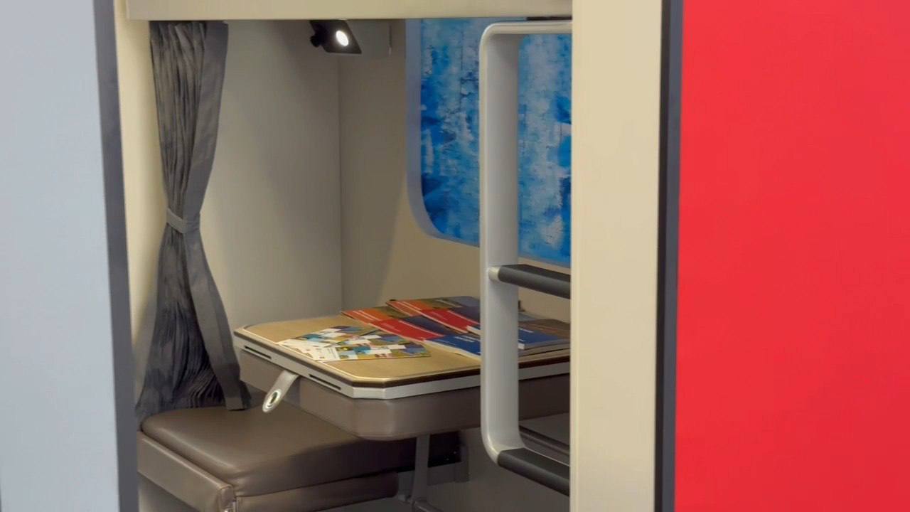 В составе поездов они появятся, ориентировочно, в 2027 году. Вагоны стали просторнее. Число место увеличили до 58. Каждое оснащено светильником, воздуховодом, USB-портами и розеткой на 220 вольт. К двум туалетам в вагоне добавилась душевая кабина.