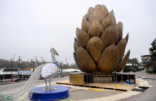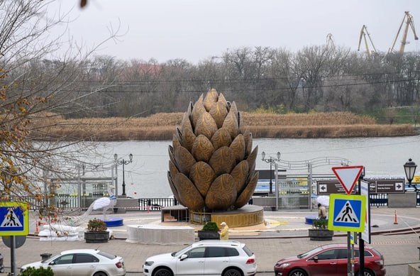 В Ростове-на-Дону решили пофантазировать на тему новогоднего убранства города. На набережной р. Дон вместо ёлки впервые установили огромную шишку. Горожане отнеслись к арт-объекту неоднозначно.