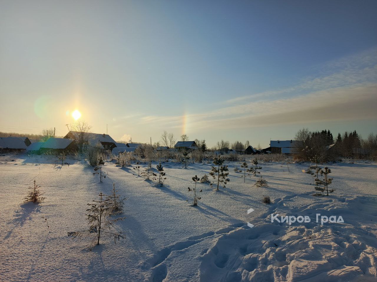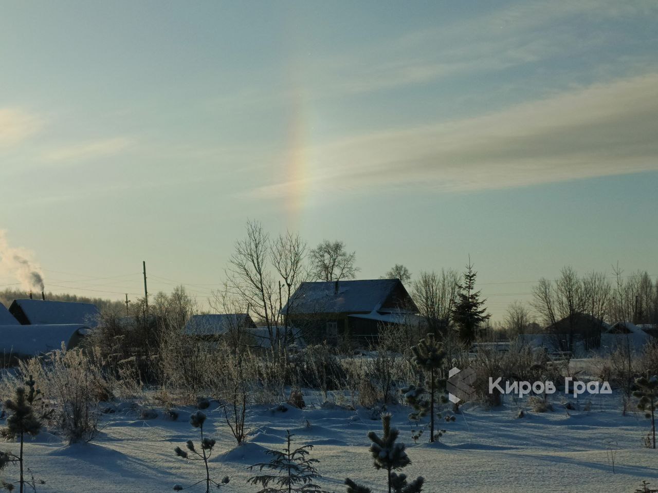 Накануне в Опаринском районе при минус 20 и солнце можно было наблюдать фрагмент зимней радуги.