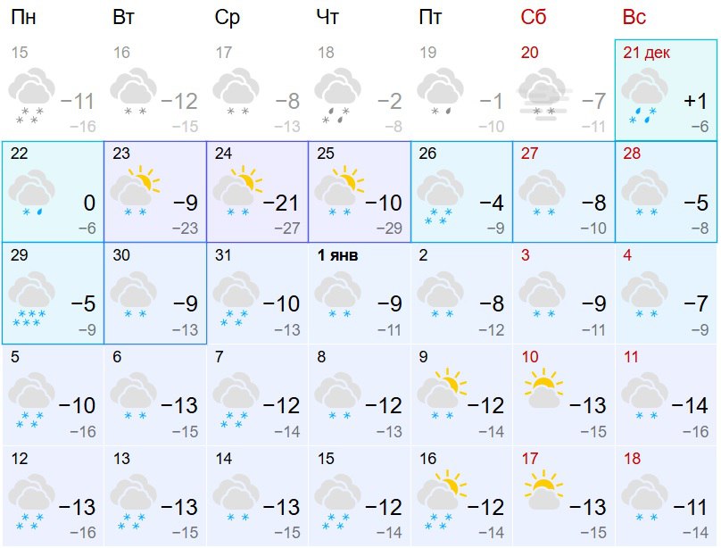 Вторник, среда и четверг напомнят кировчанам, какой бывает настоящая зима. От -20 днем и до -36 по ночам. К вечеру четверга потеплеет до -10, пятница, суббота и воскресенье — комфортные -4-5 градусов.