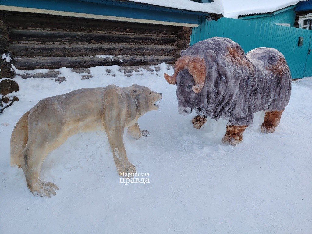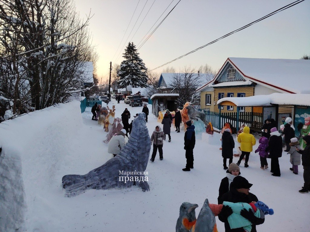 В деревню Большая Мушка в Сернурском районе Марий Эл снова едут гости со всей республики, чтобы полюбоваться удивительными снежными скульптурами. Их каждую зиму лепят местные жители — супруги Тымбаршевы.