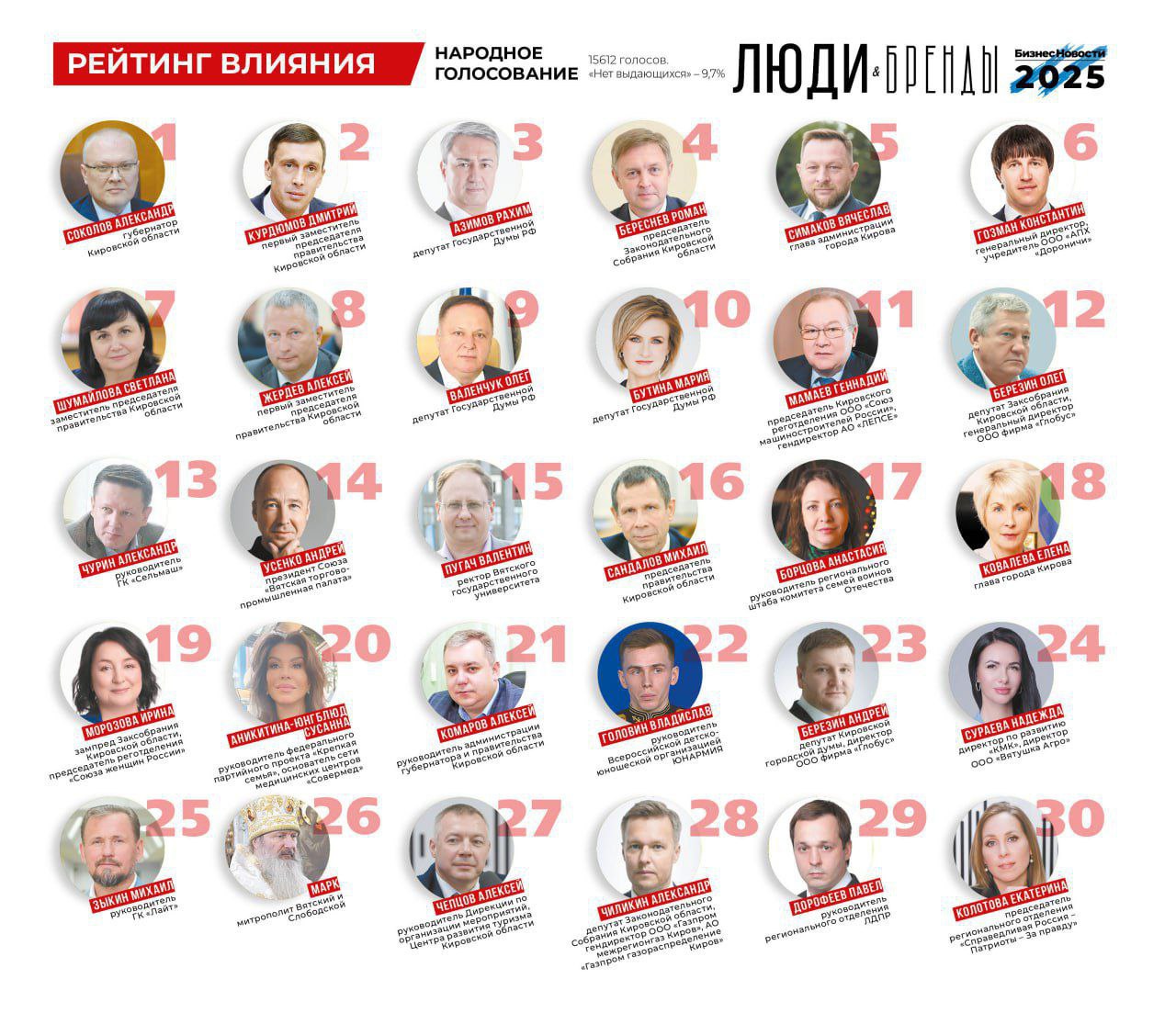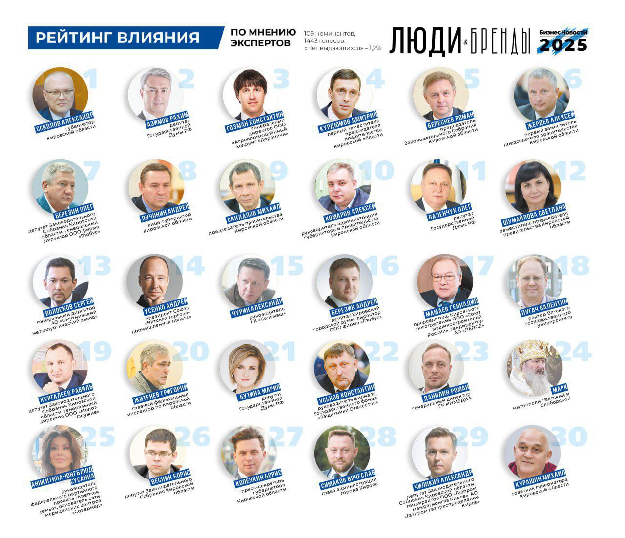 «Люди и бренды-2025». Названы самые влиятельные люди в Кировской области