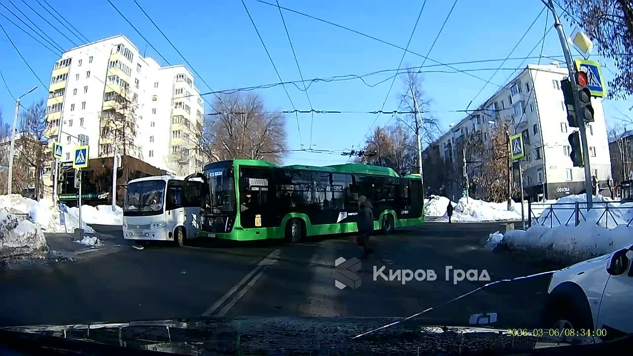 На пересечении Владимирской и Милицейской сегодня утром могло произойти столкновение двух автобусов.