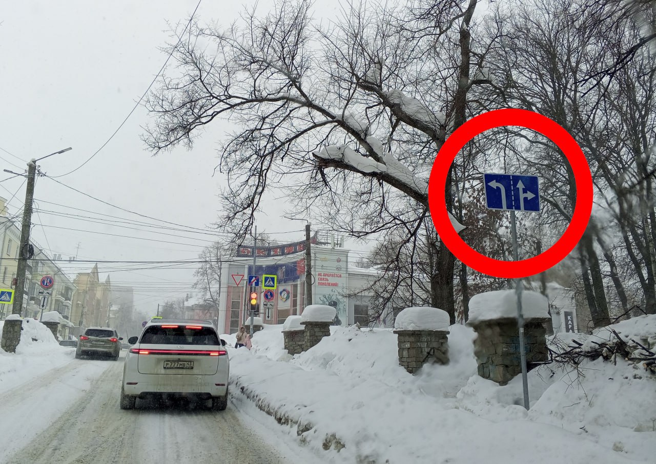 При проезде перекрёстка Владимирской и М.Гвардии, двигаясь по М.Гвардии от Никитской (участок с односторонним движением), теперь нужно руководствоваться знаком «Направление движения по полосам».