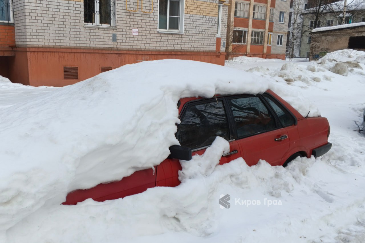 В Кирове из-под снега начали проклевываться первые автомобили