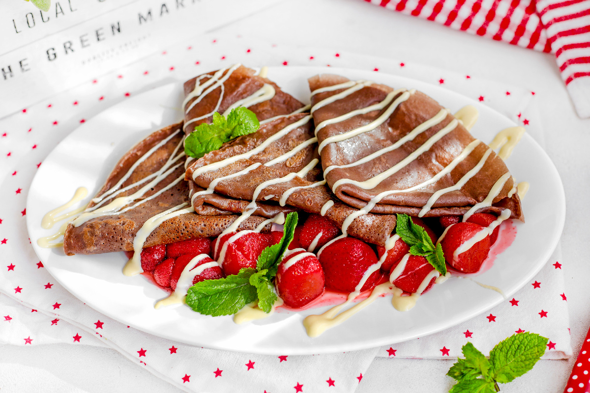 Сладкое восхищение в виде шоколадных блинчиков с клубникой и белым шоколадом станет настоящим хитом на вашем столе. Приятного аппетита!