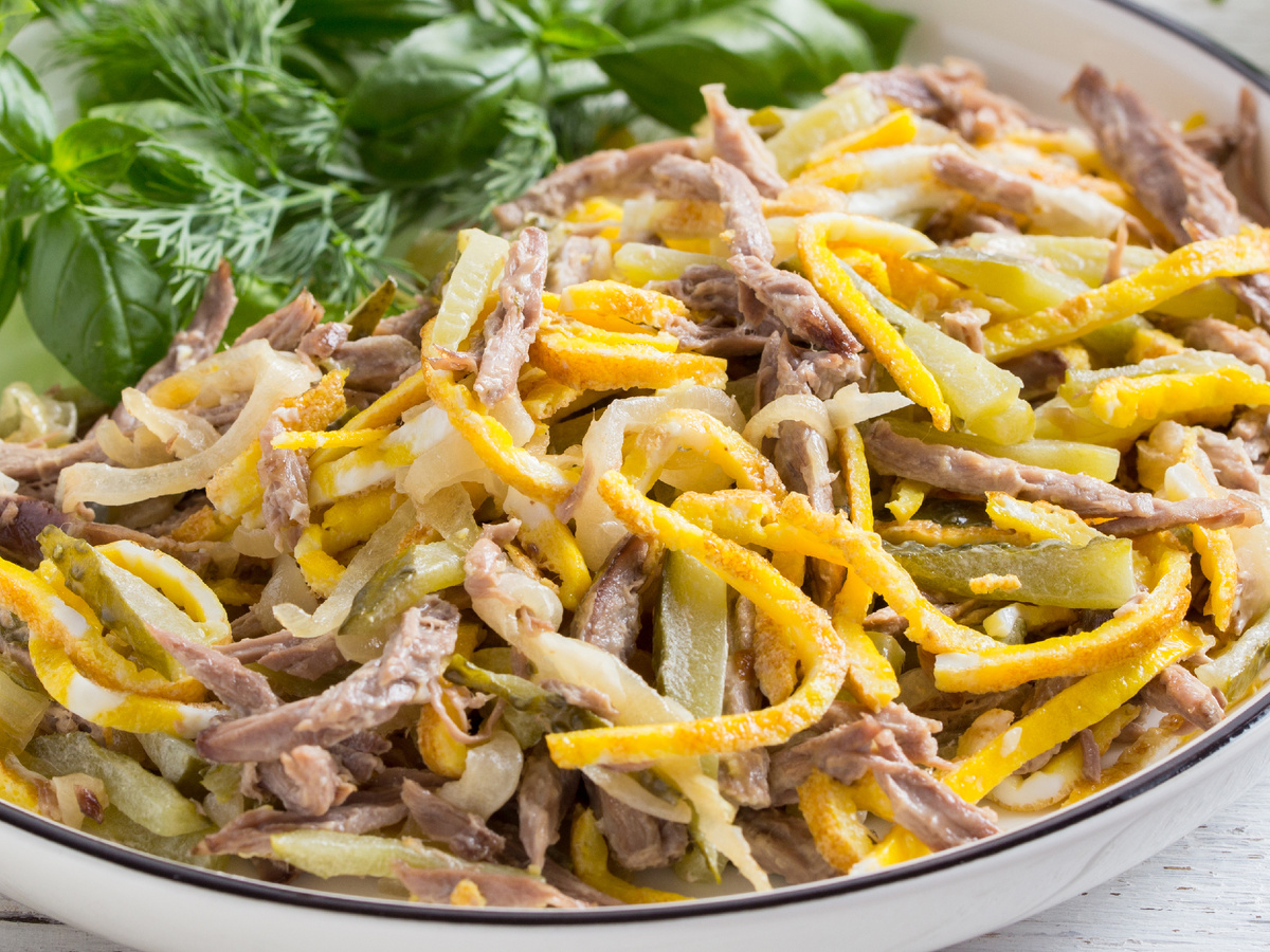 - Салат «Боярский» — с отварной говядиной и свежими овощами.