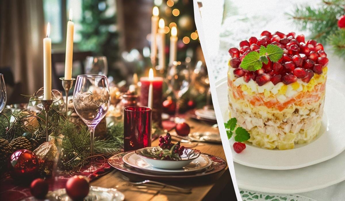 Замена традиционного оливье на салат с курицей или “Гранатовый браслет” с курицей и грибами также станет отличным решением. Энергия курицы под шубой придаст вашему новогоднему столу уникальности.