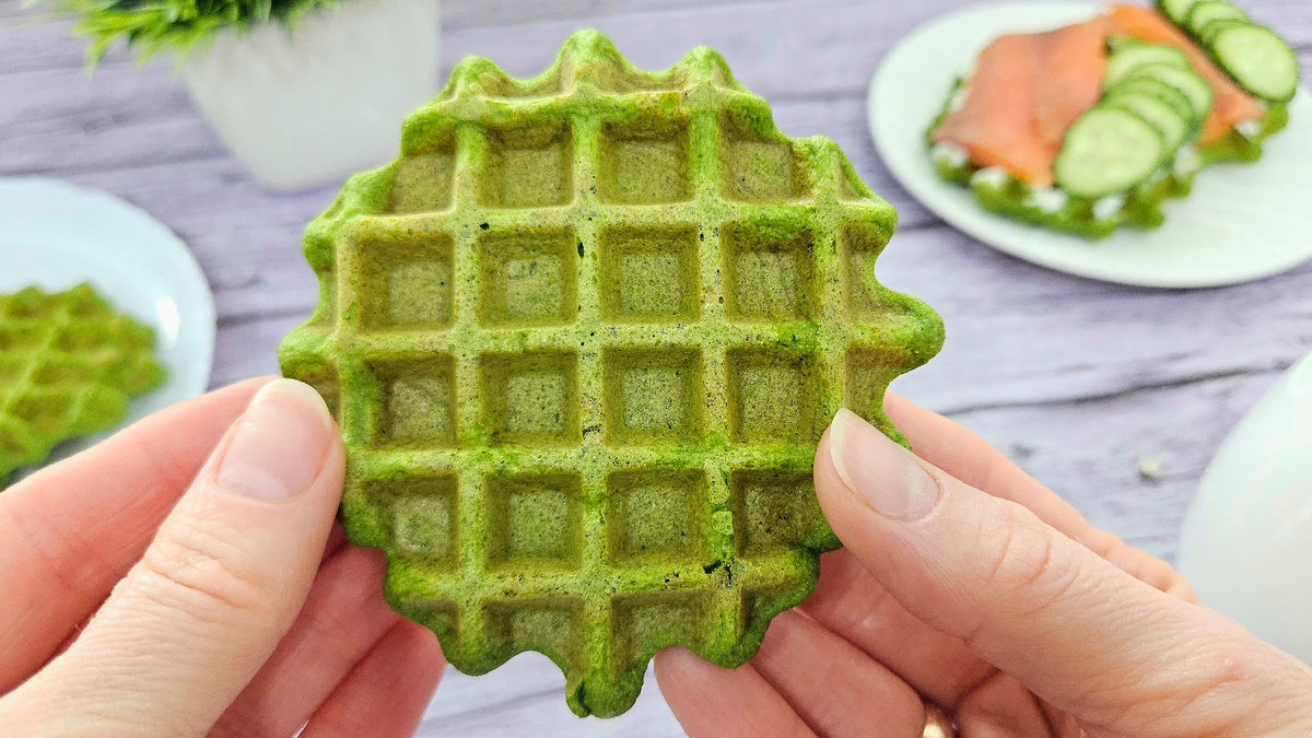 Шпинат богат витаминами и минералами, такими как железо и кальций, что делает эти вафли не только вкусными, но и полезными для здоровья.