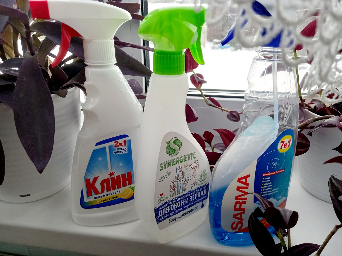 - Для мытья окон: наиболее популярными являются средства от компаний «Синергетик» и «Сарма». Эти гели не только отлично очищают стекла, но и отличаются приятным отсутствием резкого запаха.