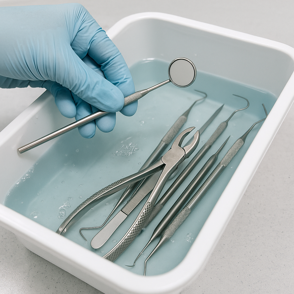 Для каждого типа инструментов используются разные дезинфицирующие средства, учитывающие их специфику и цену. Из-за высокого уровня расходов на стоматологическое оборудование, безопасность для него — ключевой аспект выбора дезинфицирующих средств.