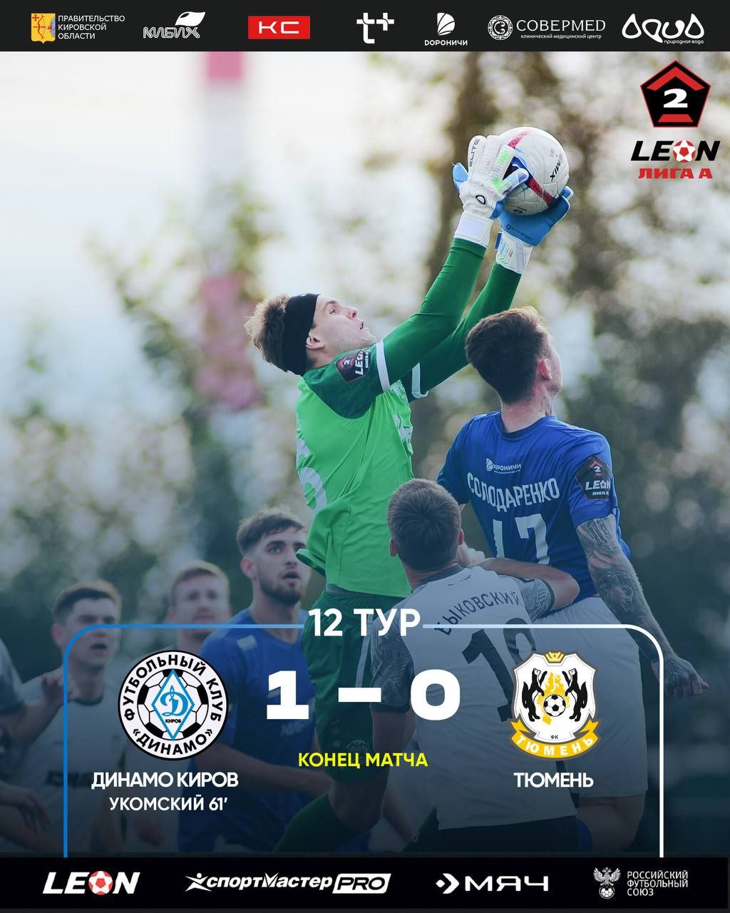 Победное пенальтиКировское «Динамо» обыграло сегодня на домашнем поле команду «Тюмень».За весь матч ворота были поражены лишь один раз - на 61-й минуте динамовец Артемий Укомский реализовал пенальти.Видео: «Вести. Кировская область»@Kirov_grad