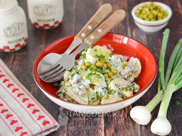 Этот салат из картофеля и консервированного горошка сочетает в себе свежесть зелени и пикантность горчицы. Прост в приготовлении и полон витаминов!