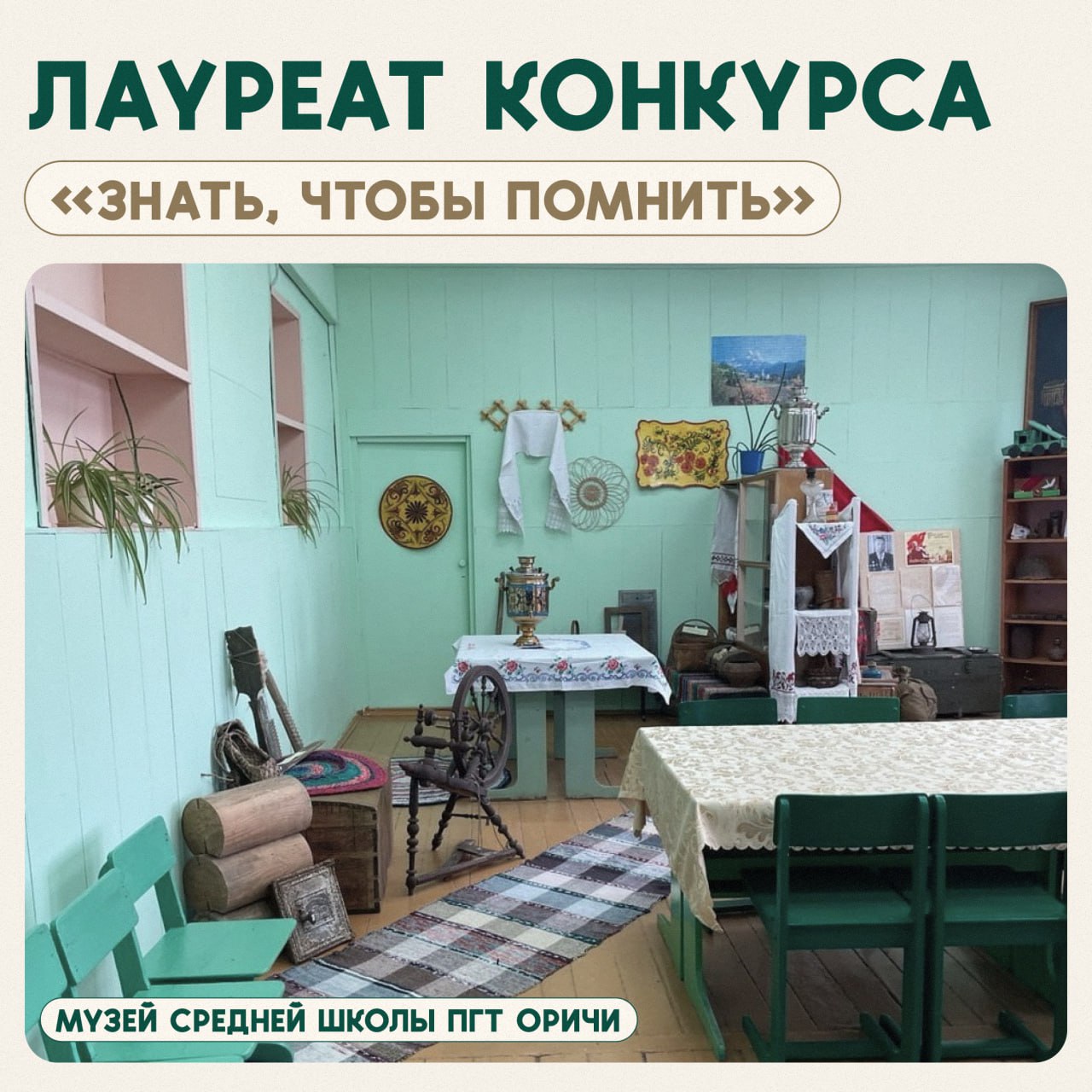 Музей средней школы пгт Оричи стал лауреатом всероссийского конкурса «Знать, чтобы помнить» партии «Единая Россия».