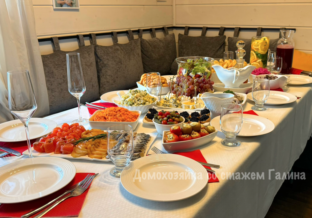 Не обошлось и без классических закусок, которые всегда занимали особое место на столе. Среди них: