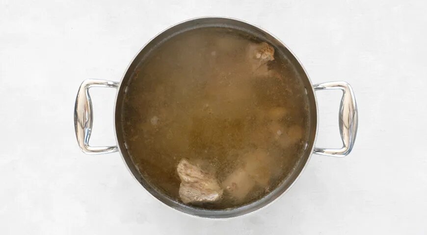 Начать стоит с выбора качественной говядины. Мясо следует тщательно промыть под холодной водой и убрать лишний жир. Затем помещаем его в кастрюлю, заливаем 3 литрами холодной воды и ставим на огонь. Дождавшись, пока вода закипит, шумовкой снимаем образовавшуюся пену. Уменьшаем огонь до минимума и варим говядину примерно 1,5 часа, чтобы бульон получился поистине наваристым и насыщенным.