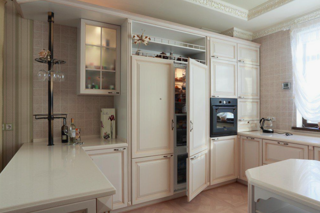 - Эстетика: Идея встраивания — создание единой монолитной поверхности. Точность измерений позволяет безупречно интегрировать холодильник в кухонный гарнитур.