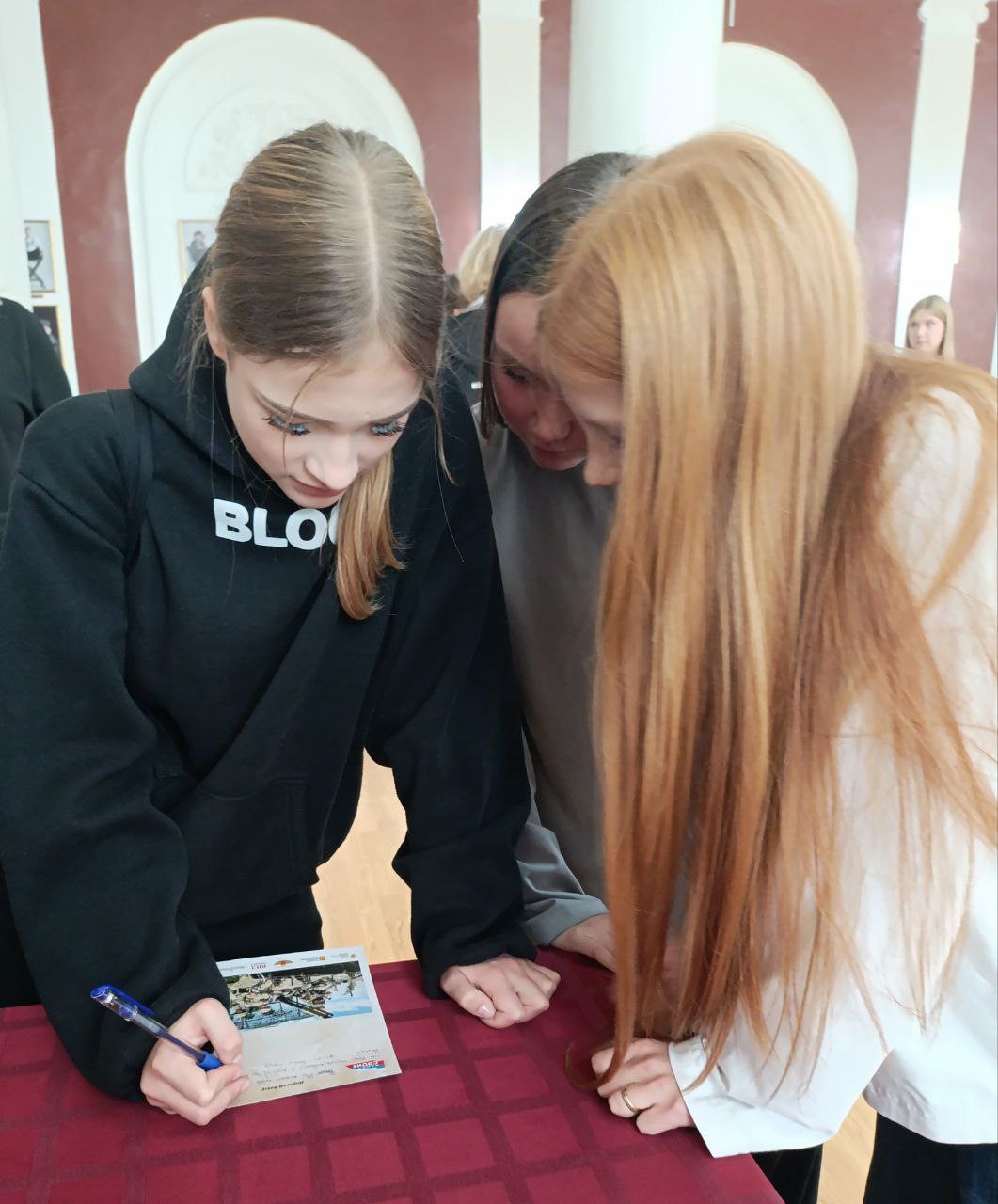 На вчерашней фотовыставке "Помним СВОих" ребята подписали открытки со словами поддержки для действующих бойцов СВО.