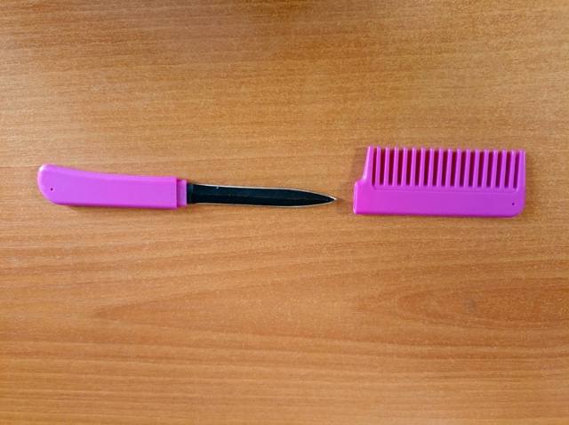 Женщина пришла в Октябрьский районный суд Кирова, чтобы подать ходатайство о снятии судимости по уголовному делу. Во время прохождения контроля младший судебный пристав попросил показать содержимое её сумки. Сотрудник обратил внимание на розовую расчёску, обнаружив небольшие зазоры между зубьями и рукоятью. Дальнейший осмотр показал, что внутри расчески скрыт опасный предмет — нож.