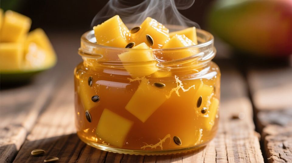 Представьте, как по возвращении домой вас охватывает атмосфера тропиков: сладковатый аромат спелого манго наполняет пространство, а легкая цитрусовая свежесть добавляет шику. Манговое варенье — это не просто лакомство, а настоящий портал в мир ярких вкусов и солнечных воспоминаний. Сочетание нежности тропического фрукта и тепла специй создаёт гармонию, раскрывающуюся с каждой ложкой.