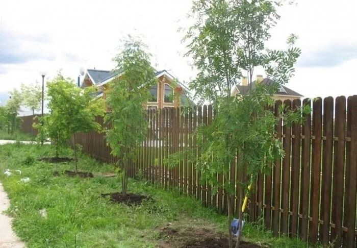 - Высокие деревья (например, дуб, береза) должны находиться не ближе 4 метров к границе.