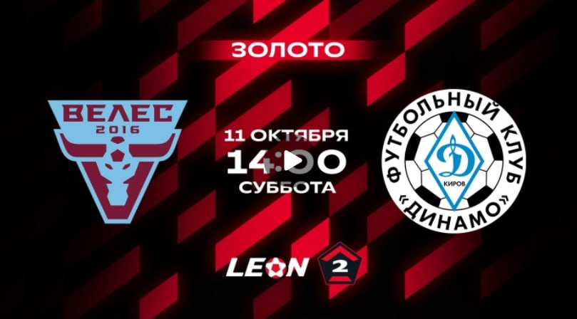 Сегодня состоится матч 13-го тура LEON-Второй лиги А. «Динамо-Киров» сыграет на выезде против ФК «Велес». Встреча пройдёт на стадионе «Труд» города Подольска.