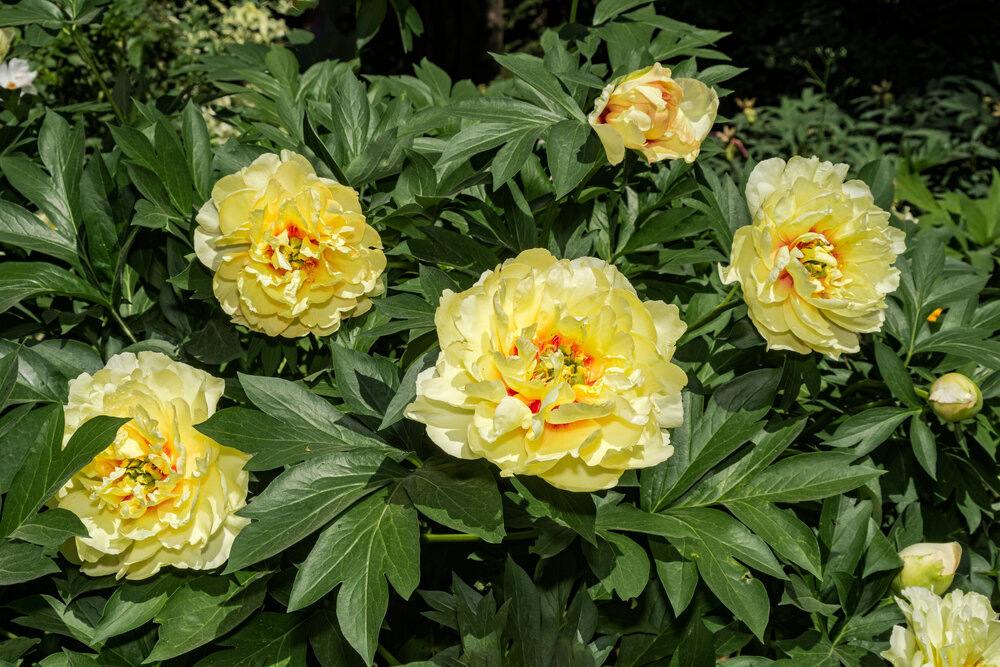 Эти пионы часто являются предметом желаемости коллекционеров и настоящей находкой для новичков. Всегда привлекают внимание яркие желтые оттенки, которые могут варьироваться от солнечного до бледно-кремового. И хотя идеальная желтая окраска еще не достигнута, её существующие варианты, в сочетании с кремовыми или медными оттенками, не оставляют шансов остаться незамеченными.