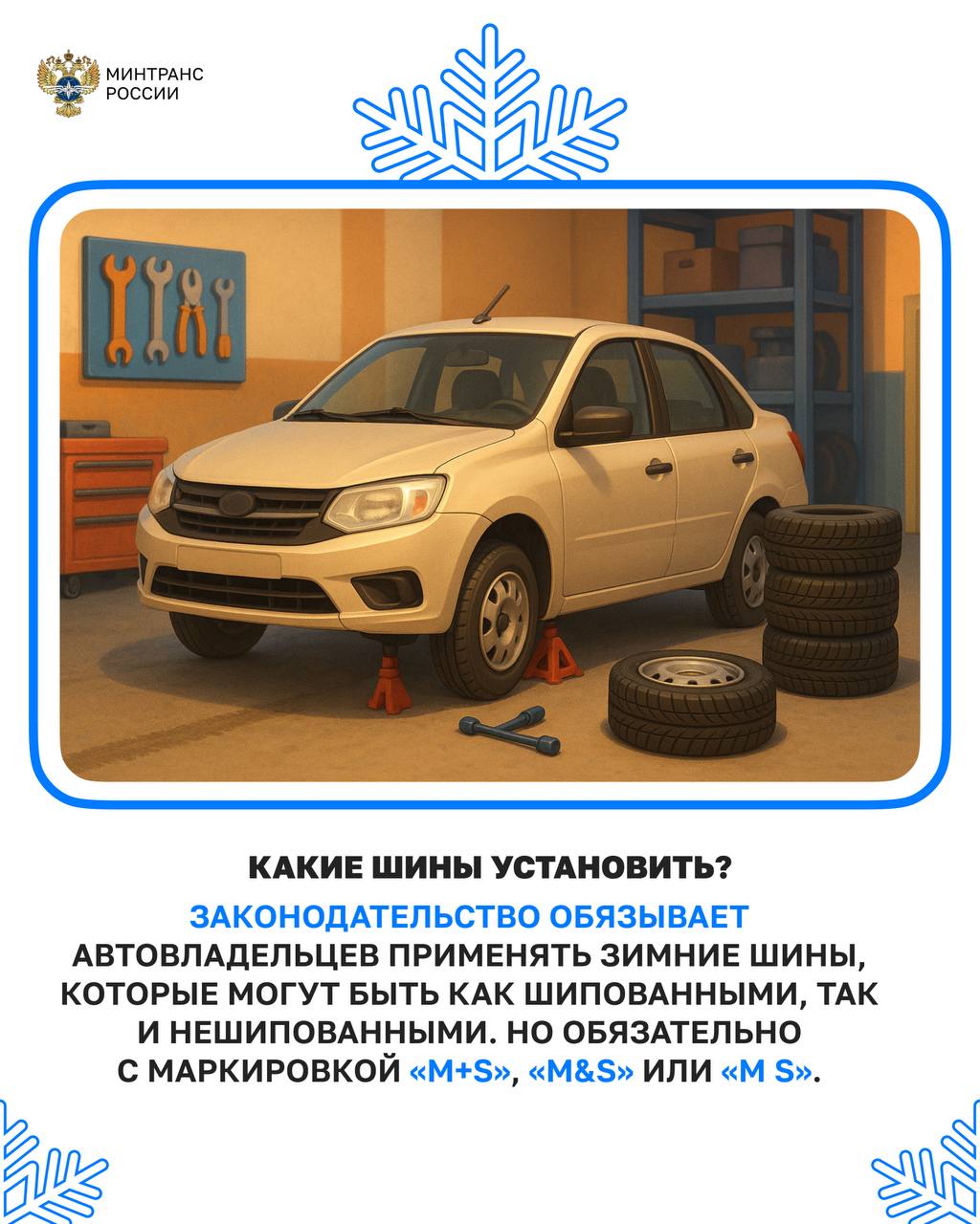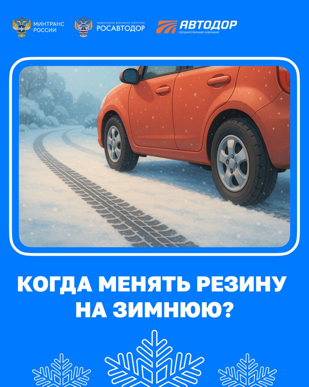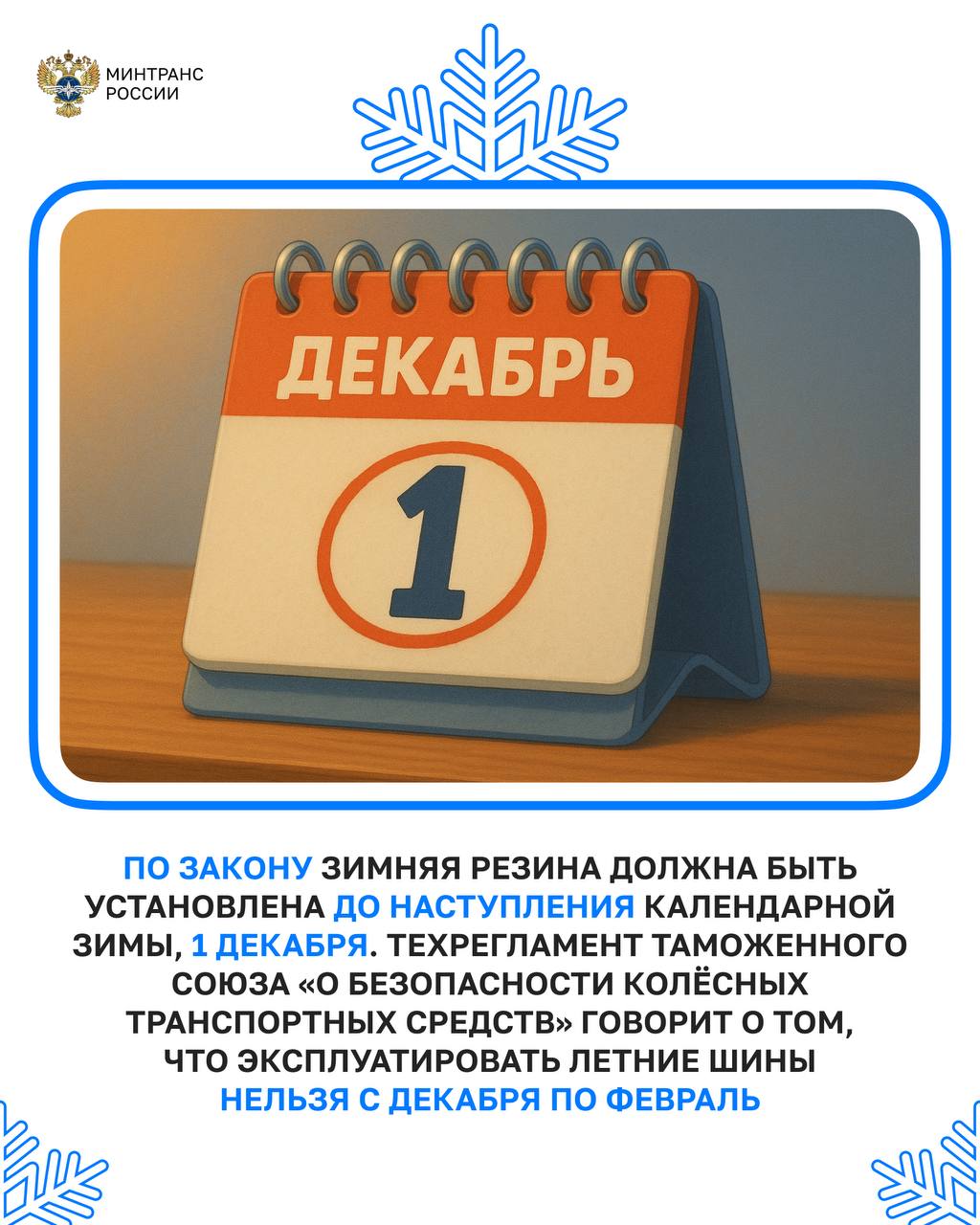 Министерство транспорта России и Росавтодор напомнили автомобилистам о необходимости «переобуть» летнюю резину на зимнюю.