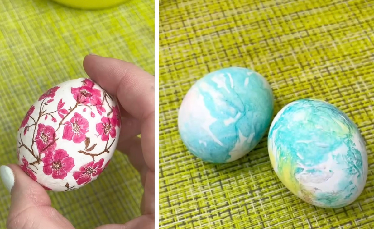 3. Дайте яйцам высохнуть около 15 минут перед тем, как аккуратно снять салфетку. Напротив стандартного подхода, здесь вы получите яркие и разнообразные узоры, которые поразят даже самых строгих критиков.