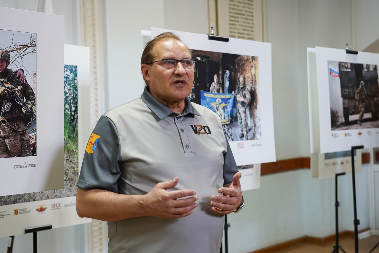 Участники экспозиции познакомились с картинами быта бойцов и боевых действий. Выставку дополнили своим рассказом действующий боец СВО, гвардии рядовой Денис Якушевич (позывной "Вятка") и доброволец, служивший в Кировском полку и демобилизовавшийся по возрасту, а ныне - участник проекта "Вятский корпус Защитников Отечества" Николай Целоусов.