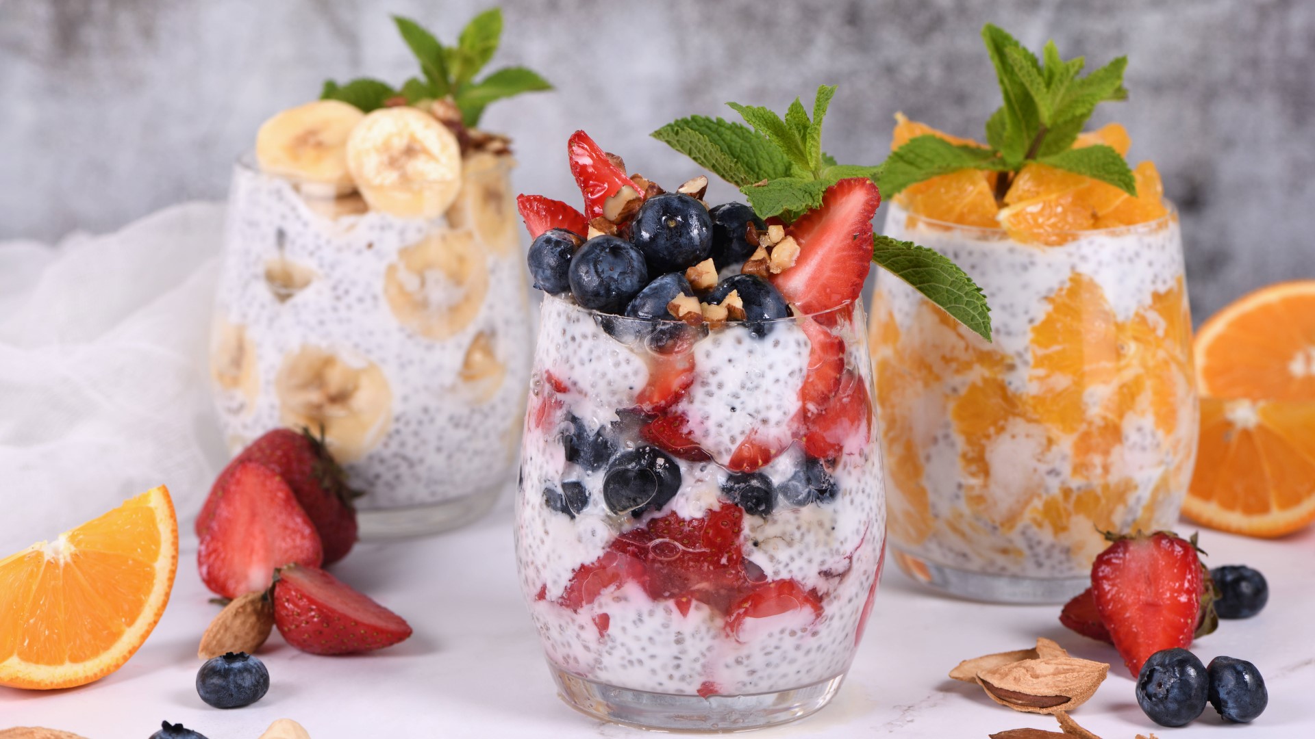 Йогурт и чиа можно смешать с вечера и убрать в холодильник. За ночь семена хорошо набухнут.
